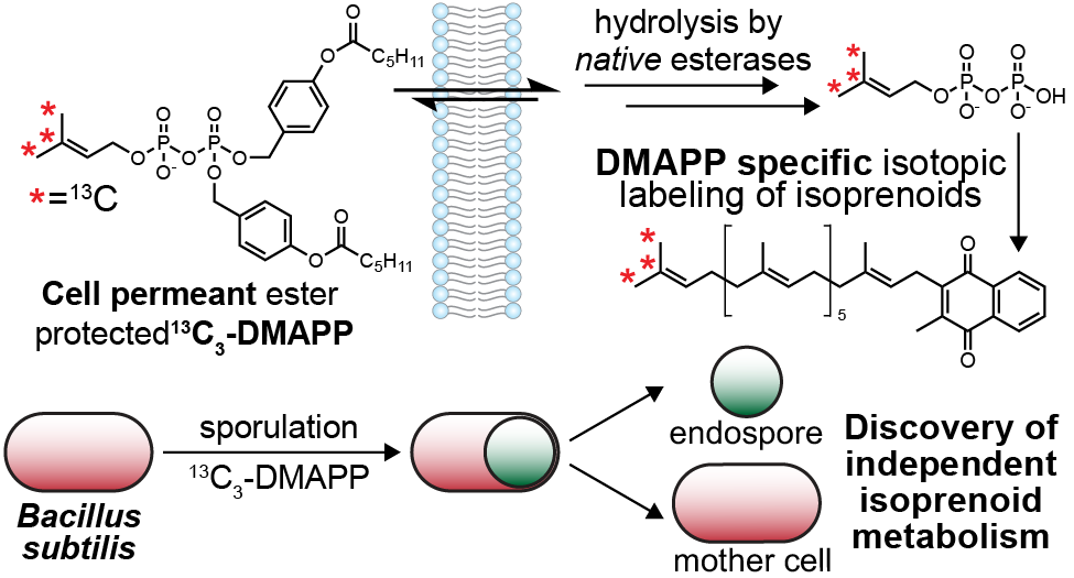 8. McBee, D.P.; Hulsey, Z.N.; Hedges, M.R.; Baccile, J.A.*; Stable Isotopic Labeling of Dimethylallyl Pyrophosphate (DMAPP) Reveals Compartmentalization of Isoprenoid Biosynthesis during Sporulation in Bacillus subtilis. J. Am. Chem. Soc., 2025, (ASAP) [doi]